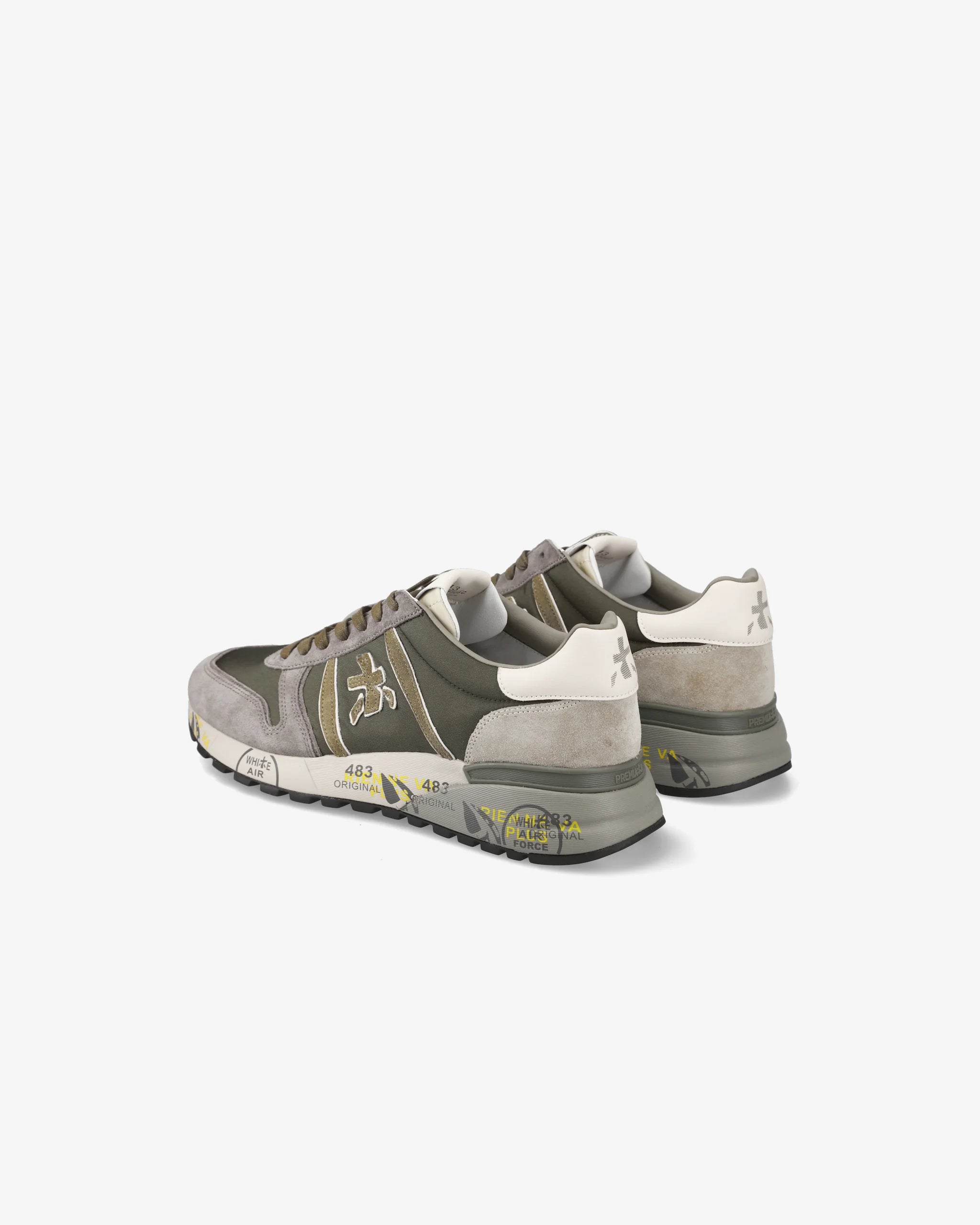 Sneakers Lander in pellame morbido scamosciato e nylon. Il look è arricchito dall’inconfondibile logo Premiata. Suola ergonomica e super leggera.