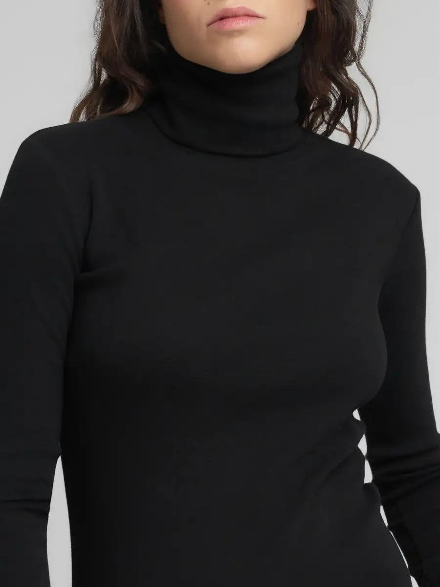 T-shirt dalla vestibilità aderente realizzata in misto cotone stretch mélange. Il modello presenta collo alto e maniche lunghe ed ècaratterizzato da una lavorazione a costine su tutto il capo.